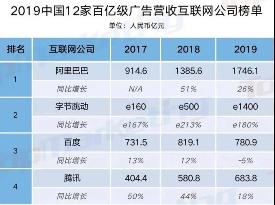 不得不说,巨头的背后是行业的变局。近年来以字节跳动为代表的新兴互联网公司正以高歌猛进的姿态侵占BAT为代表的互联网巨头的广告业务份额。
