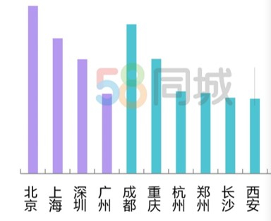 今年租房需求最大的10个城市分别是北京、上海、深圳、广州、成都、重庆、杭州、郑州、长沙和西安,包含了4大一线城市和6个新一线城市。新一线城市中,成都居首位,排名全国第二,仅次于北京。