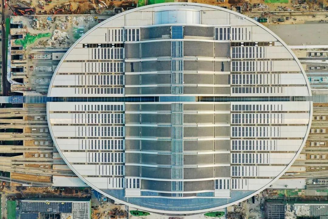 而更为令人叹为观止的是标志性的椭圆形屋顶犹如一个能量收集场,拉开一条宽15米的“光谷”,可有效改善地面候车厅的采光、通风环境。“光谷”下方通道内布置大量绿植,为旅客营造舒适宜人的绿色空间。