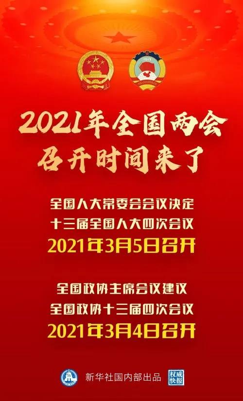 十三届全国人大常委会第二十四次会议26日表决通过了关于召开十三届全国人大四次会议的决定。根据决定,十三届全国人大四次会议将于2021年3月5日在北京召开。