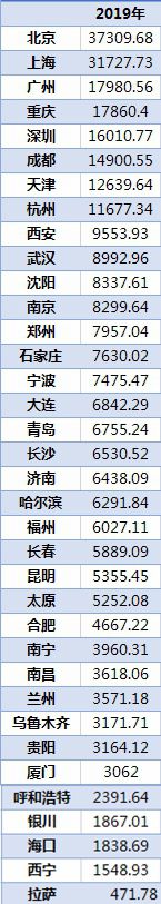 重庆之后,深圳以1.6万亿元位居第五,成都以1.49万亿元位居第六,此外天津和杭州也都超过1万亿元。西安和武汉这两个中西部的大区中心城市位列第九和第十位。