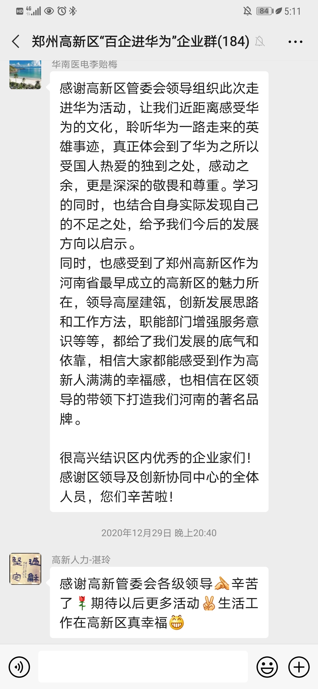 企业家踊跃发言,对高新区进入发展“快车道”给予充分肯定,对这次华为之行充满期待,迫切希望能够进入华为供应链或拓宽合作领域,表示将努力对标华为这样的优秀企业,为高新区“十四五”发展多做贡献,并对高新区的“十四五”发展建言献策。