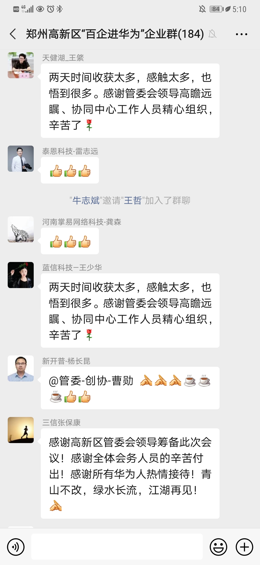 “王新亭嘱托,参加此次活动的企业家把握机会,深入交流,不断触发合作点,拓宽合作面,加深合作度,加快形成华为领航、携手发展的生态体系。”