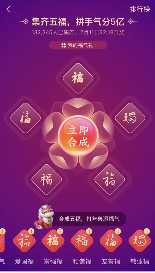 不仅有人刚过零点就从大河财立方App拿到敬业福,还有人立马就集齐了五福,可以说非常“大河财立方速度”了。