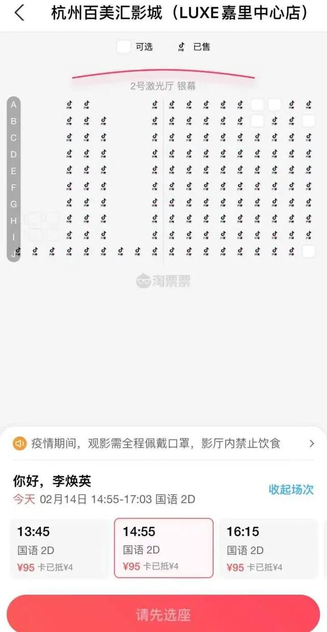 “原来,网友最近说的‘看电影不挑座’是真的啊”,裴先生告诉记者,之前低估了身边人的观影热情,没想到距离大荧幕近、常被冷落的第一排,也被挑得只剩下2个位子了。“只好再看看其他场次,但也只有靠边坐的余位可供挑选,”裴先生说。