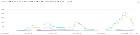据立方舆情通查询,截至3月17日11:30,全网关于该事件的相关舆情信息共计1.57万篇次。根据整体传播趋势可以看出,传播数据在3月17日9:00达到高峰,该时段相关信息量达2183篇次。