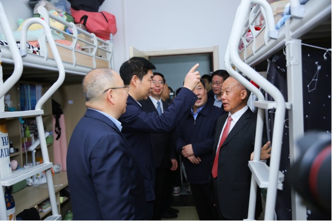 在学生们的热烈掌声中,宋争辉与张敬国一起为“沃泽黉门”纪念石揭幕。随后,张敬国还与郑州大学校领导一起参观了改造竣工后的宿舍楼。看着改造完成后的学生宿舍楼,张敬国说:“希望学弟学妹们珍惜学习环境,为创新社会文明建设做出新的贡献。”