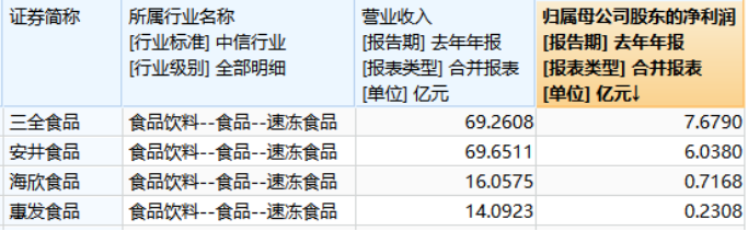 从业绩增速来看,三全食品去年净利润增速(249.01%)明显高于营收增速(15.71%)。