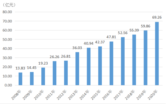 2008年,三全食品登陆A股资本市场。当年,其营收突破10亿元大关,达13.83亿元。此后,三全食品营收一直保持着正增长。2020年,其营收创下新高——69.26亿元。与12年前刚上市时相比,增长400%。
