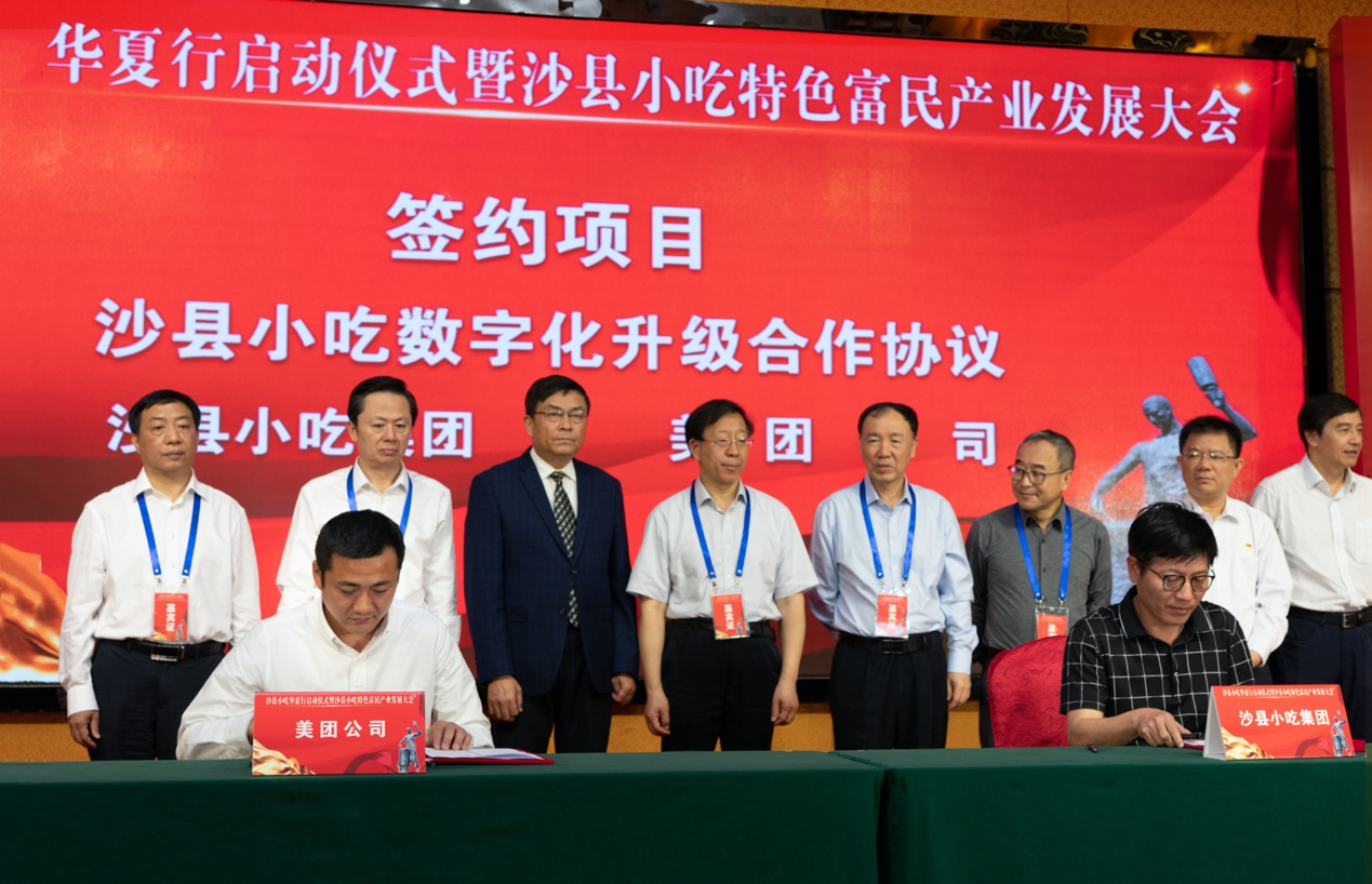 【大河报·大河财立方】(记者 丁洋涛)4月23日,在商务部、福建省人民政府指导下,沙县小吃华夏行启动仪式暨沙县小吃特色富民产业发展大会在沙县举行。沙县小吃集团与美团正式签署数字化升级合作协议,双方将携手在品牌建设、数字化经营、IT能力、智慧门店、人才培养、供应链、金融结算、互联网营销等八个方向展开合作,为全国加盟门店提供标准化服务,为消费者创造小吃消费新体验,放大沙县小吃对城市化、乡村振兴的带动作用。
