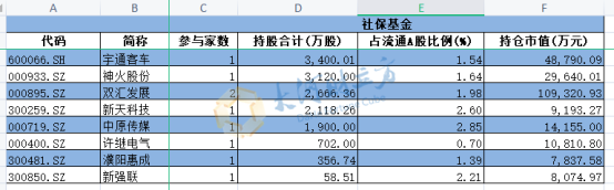 值得注意的是,在社保基金持股的8只豫股当中,仅双汇发展为两家社保基金参与,其余均1家参与。