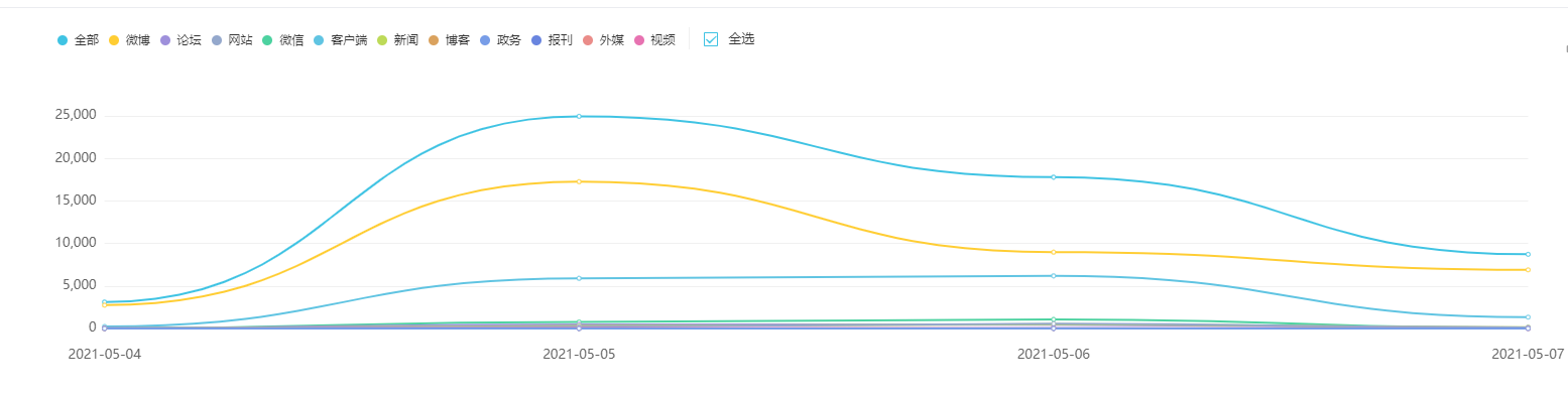 立方舆情通数据显示,截至5月7日9:30,全网关于该事件的相关舆情信息共计5.43万篇次,其中敏感信息占比23.17%。纵观该事件整体传播趋势,传播数据在5月5日凌晨达到高峰,随后呈现递减趋势。