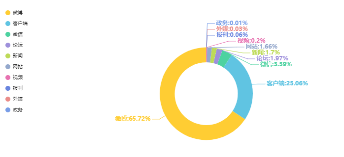 因该事件涉及热门选秀节目,从主要传播媒介及媒体活跃度来看,微博成为该事件主要舆论阵地,65.72%的信源为微博。