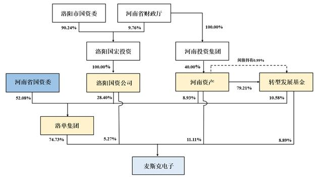 招股书显示,截至目前洛阳单晶硅集团有限责任公司(以下简称“洛单集团”)直接持有麦斯克112097556股份,占公司总股本的74.73%,为公司控股股东。河南省国资委直接持有洛单集团52.08%的股权,系洛单集团的控股股东及实际控制人,亦为麦斯克的实际控制人。