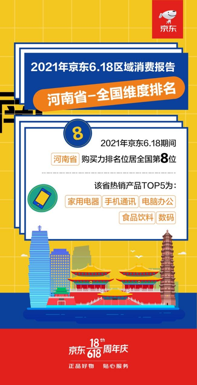 【大河报·大河财立方】(记者 杨霄 丁洋涛 文 吴彤彤 剪辑)6月18日,是国内618大促的顶峰。当日在北京京东集团总部,京东大数据研究院高级分析师林江向大河报·大河财立方介绍,本季618,河南省成交规模稳稳守住了全国八强之位,6月18日当天成交额同比增长61%。手机、空调,依旧是河南人在618购买力最强的两类商品,iPone12站稳了河南人菜篮里的NO.1。