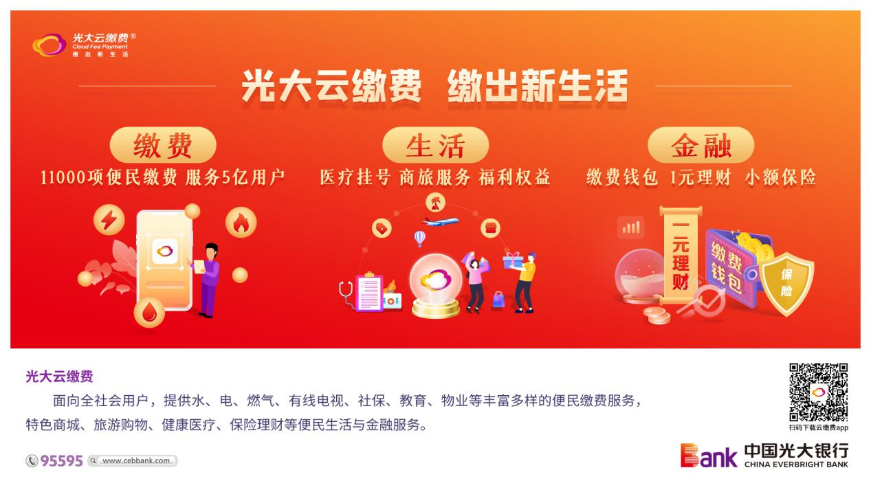 下一步,光大云缴费将坚定落实“实现云缴费三大跨越”发展要求,以云缴费客户端、官方小程序、社保小程序、社区服务小程序等自有渠道为核心,建设教育、医疗、出行、社区、商超等五大跨界生态工程,为“打造一流财富管理银行”创造更大核心价值。