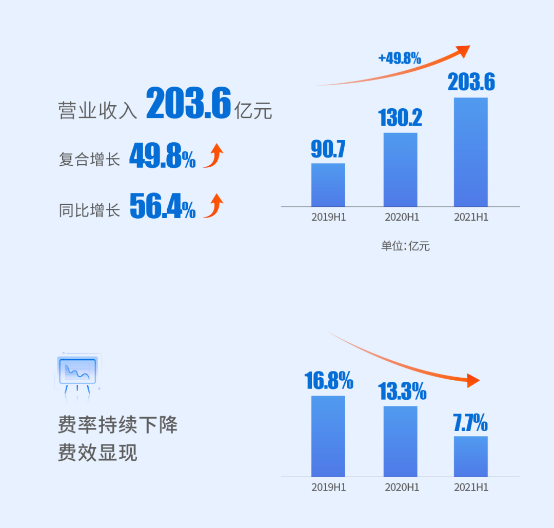 报告期内,建业地产实现营业收入203.6亿元,复合增长49.8%,同比增长56.4%。收益分布方面,物业销售收益由2020年上半年约人民币123.7亿元,增加57.0%至2021年上半年约人民币194.2亿元;来自轻资产(分拆上市前)的项目管理服务收入由2020年上半年约人民币4.6亿元,上升22.6%至2021年上半年约人民币5.7亿元;酒店经营收入由2020年上半年约人民币0.9亿元上升79.0%至2021年上半年约人民币1.7亿元;物业租赁收入由2020年上半年约人民币0.6亿元上升59.6%至2021年上半年约人民币0.9亿元。