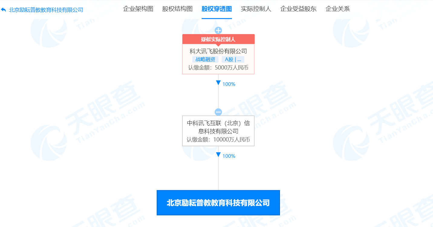 股权穿透信息显示,该公司由科大讯飞股份有限公司间接全资控股。