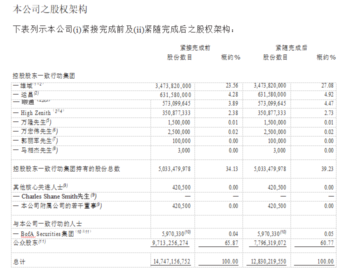 9月8日晚,万洲国际(00288.HK)公告称,公司要约回购的19.17亿股股份已于9月8日完成注销。因此,公司已发行股份总数由147.47亿股减少至128.3亿股,而控股股东万隆以及其一致行动集团持股量由约34.13%增加至约39.23%。公众股东的持股则由65.87%降至60.77%。
