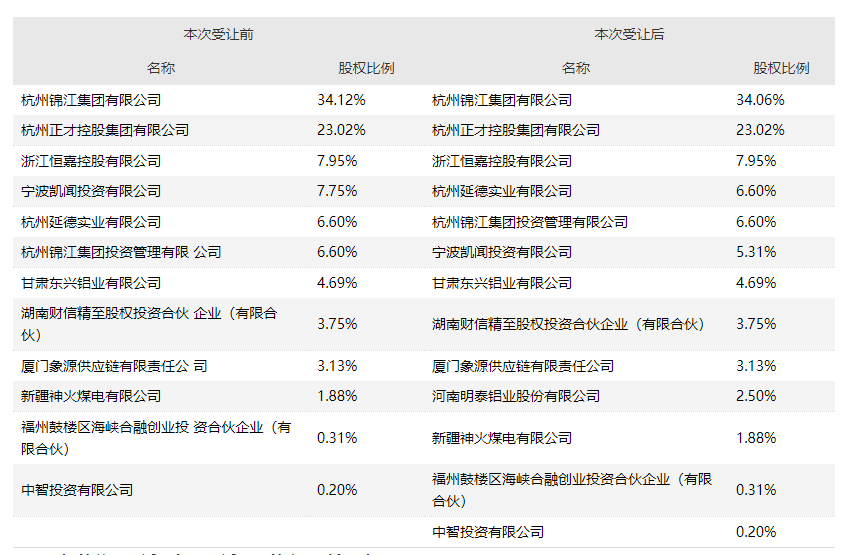 【大河财立方消息】9月16日,明泰铝业公告称,拟以现金4亿元受让杭州锦江集团、宁波凯闻投资有限公司(简称“宁波凯闻”)合计持有的开曼铝业(三门峡)有限公司《简称“开曼铝业(三门峡)”》2.50%的股权,并于9月16 日与锦江集团、宁波凯闻签署了相关协议。