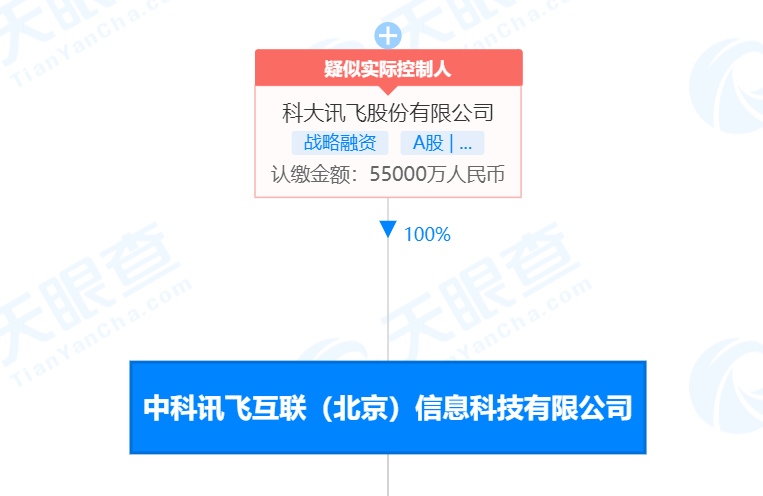 中科讯飞互联(北京)信息科技有限公司成立于2011年6月,法定代表人为江涛。股东信息显示,该公司由科大讯飞股份有限公司全资持股。