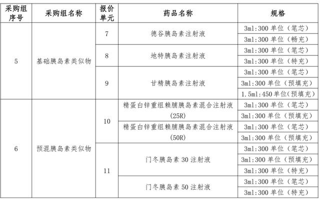 胰岛素集采11个报价单元本次胰岛素集中采购各采购组报价单元以 3ml:300 单位(笔芯) 规格为代表品,给出了一个最高有效申报价,采购周期为2年。具体来说,申报价货币单位为人民币(元),保留小数点后 2 位;以“支” 为计价单位;申报价为申报企业的实际供应价,应包括税费、配送费等在内的所有费用。
