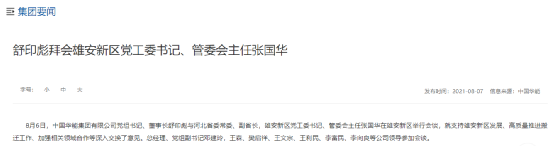中国华能则在今年8月的一则官网新闻中透露了搬迁消息。8月6日,中国华能集团有限公司党组书记、董事长舒印彪与河北省委常委、副省长,雄安新区党工委书记、管委会主任张国华在雄安新区举行会谈。当时,舒印彪表示华能将充分发挥自身优势,以总部搬迁和企业发展为契机,统筹谋划,高质量推进搬迁工作落实,做好示范表率。