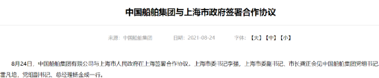 今年8月24日,上海市人民政府与中国船舶集团签署了合作协议。根据协议,中国船舶集团将加大在沪发展力度,加快在沪产业布局调整,大力推进船海创新资源在沪集聚发展,努力提升船海装备产业发展能级以及产业链、供应链现代化水平,为服务国家战略和助力上海城市发展作出更大贡献。