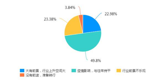 但从调查数据看,大多数经营者对茶行业未来发展持乐观态度,有49.8%的经营者认为在疫情影响下,销售仍保持与往年持平;22.98%的从业者对未来充满希望,认为上升空间巨大。