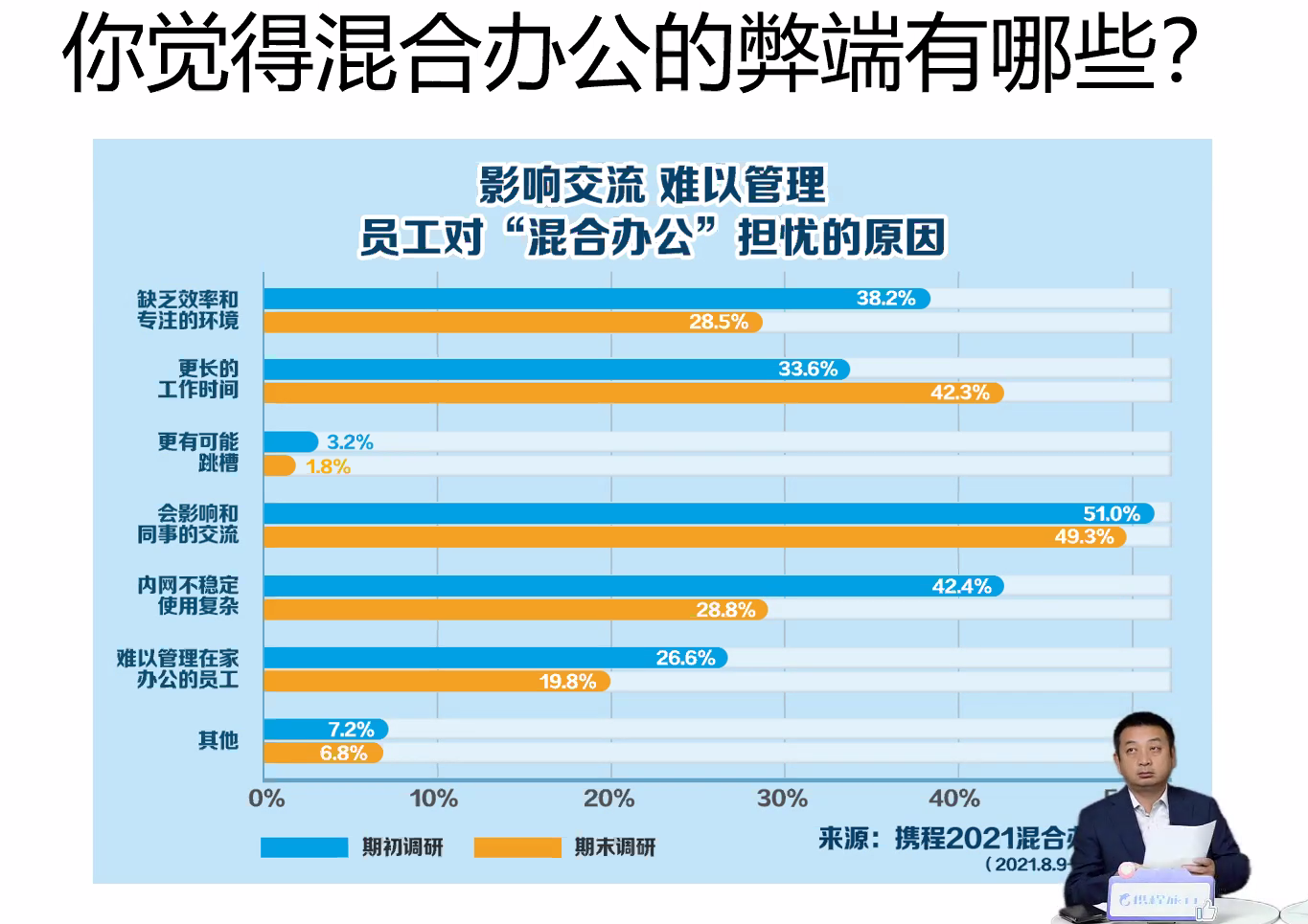 混合工作制实施后,携程内部的工作安排、工作质量如何保障?尤其是内部会议,很多需面对面商议或发生头脑风暴。