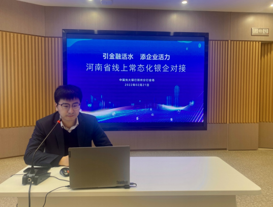 【大河报·大河财立方】(记者 徐曼丽 文 吴彤彤 图)2月21日上午,在第四期河南省线上常态化银企对接会活动中,光大银行郑州分行在线为小微企业主要讲解了并购贷款“专场”,在线与入会企业积极交流和互动。