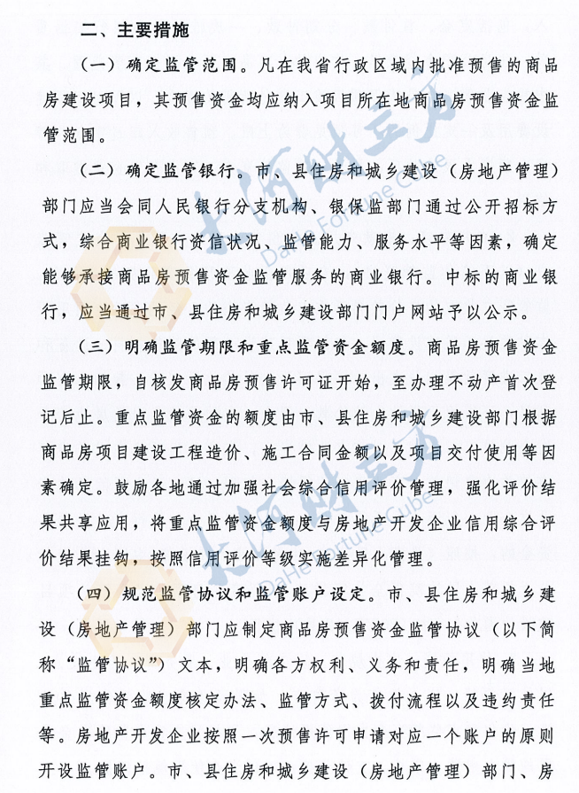 《意见》明确,凡在我省行政区域内批准预售的商品房建设项目,其预售资金均应纳入项目所在地商品房预售资金监管范围。