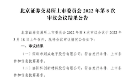 3月18日,北京证券交易所(以下简称北交所)上市委员会2022年第8次审议会议结果公告,洛阳科创新材料股份有限公司(以下简称科创新材)符合发行条件、上市条件和信息披露要求。科创新材或将成为洛阳首家北交所上市公司。