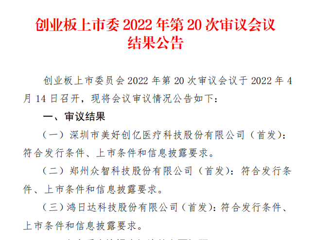 4月14日,郑州众智科技股份有限公司(以下简称众智科技)创业板上市获通过,这是进入2022年以来郑州市上市过会的第二家企业。随着众智科技的过会,河南省年内过会企业已达5家。
