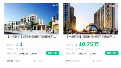 记者注意到,类似的“1元拍卖”其实并不少见。在网站搜索关键词“1元拍卖”就可以找到多个类似房源,河南省内还有两套濮阳市的房子,市场价分别在177万和120万,开拍时间分别在4月19日的上午10时与4月20日的上午10时。