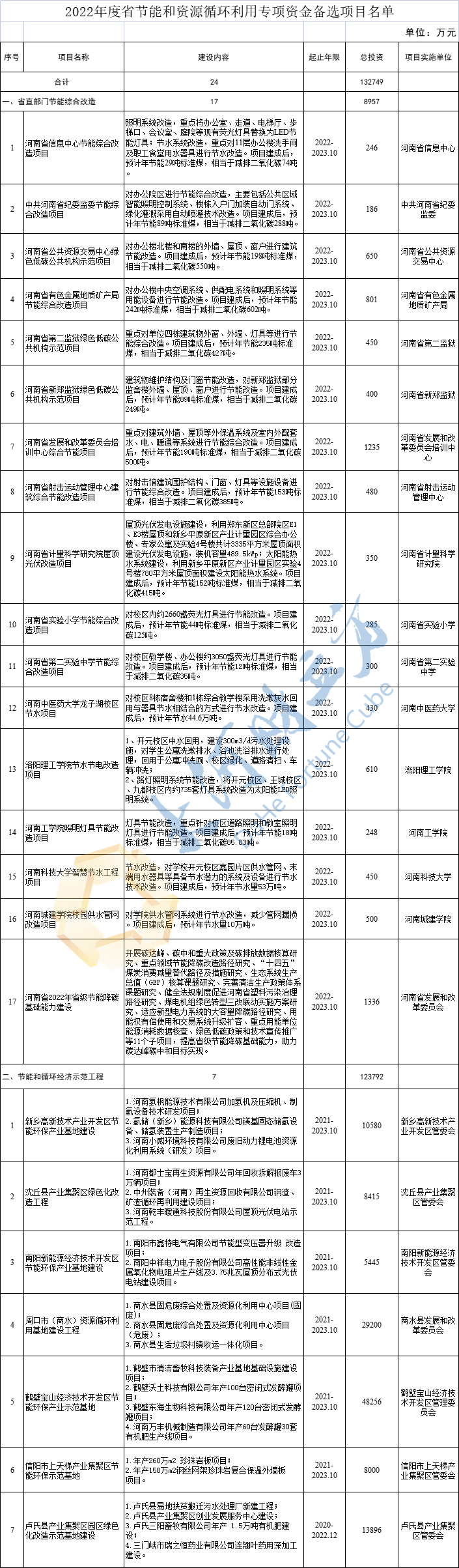 【大河财立方消息】4月18日,河南省发改委公告,拟将24个项目作为2022年省节能和资源循环利用专项资金重点支持项目,公示期为2022年4月18日~4月27日。