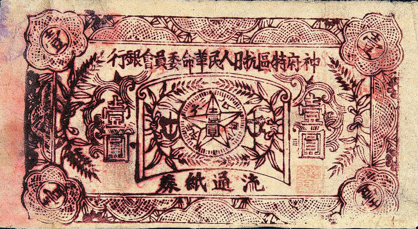 神府特区抗日人民委员会银行(后更名为:神府特区苏维埃政府银行)。神府革命根据地位于陕西北部,以神木为中心,包括府谷、佳县、榆林部分地区,面积4000多平方公里,人口有14万人,是陕北革命根据地的重要组成部分。1934年9月18日,神木县革命委员会成立,随着红军武装斗争的胜利,党、政、军领导机构的建立和健全,神木、府谷红色区域不断巩固和扩大,神木府谷革命根据地基本形成。1935年10月,中共中央到达陕北后,为加强领导决定将神木府谷革命根据地改为神府特区直属中央领导。