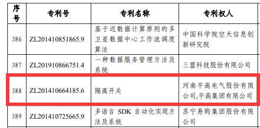 【大河财立方消息】近日,国家知识产权局公示第二十三届中国专利奖评审结果,平高集团专利“隔离开关”获中国专利优秀奖。