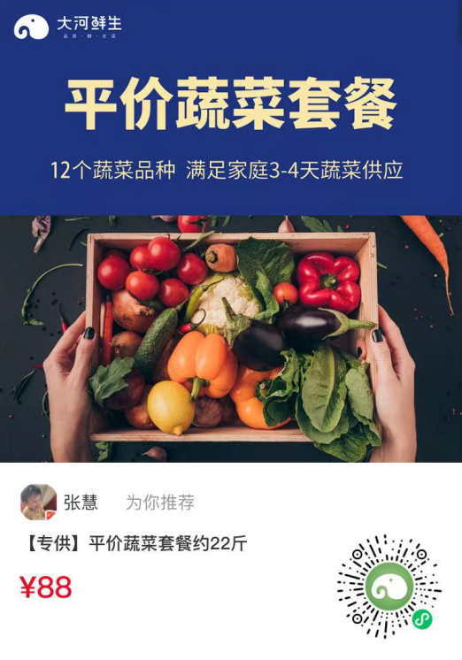 大河鲜生是郑州市防疫保供企业,在过往两年郑州历次保供服务中有着出色的表现。5月3日晚10点,该公司根据当日订单需求,向各级生鲜供应商发去了未来几天需对郑州加大供应的蔬菜清单。与此同时,该公司对所有配送人员强调准时配送,并对所有广宣渠道推送平价菜套餐,“每份12款蔬菜、22斤,可供一个普通家庭3到4天菜品用量。”