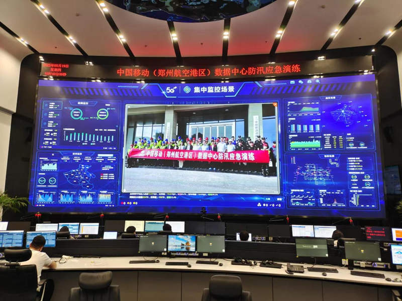 数据中心是通信网络的中枢神经所在,是汛期的重保场景。在河南移动航空港区数据中心,借鉴7·20实战经验,结合数据中心汛期重点保障区域设计沉浸式演练场景,河南移动网络管理中心云资源室、动力室、综合部、物业及合作单位等多专业协同,分别启动机楼防水封堵、高压人井排涝、监控大厅指挥调度3个演练环节开展数据中心防汛应急演练,增强了极端情况下的后备电源保障能力和网络排障能力。