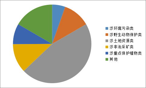 从案件构成看,刑事案件包括涉环境污染类案件、涉野生动物保护类案件、涉非法占用农用地类案件、涉非法采矿类案件、涉重点保护植物类案件、涉非法转让和倒卖土地使用权类案件等。