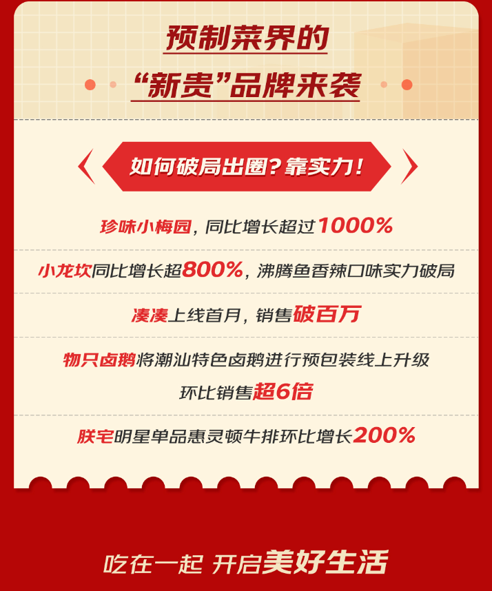 同时,京东超市也在各电商平台中率先宣布把预制菜纳入战略扶持品类,在销售数据、流量、活动IP、全渠道、市场投入、冷链物流等6个方面实施一揽子扶持举措,从而在未来三年扶持20个销售过亿元的预制菜品牌,5个销售过五亿元的预制菜品牌。