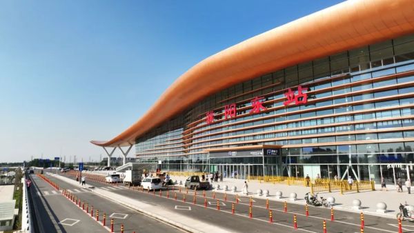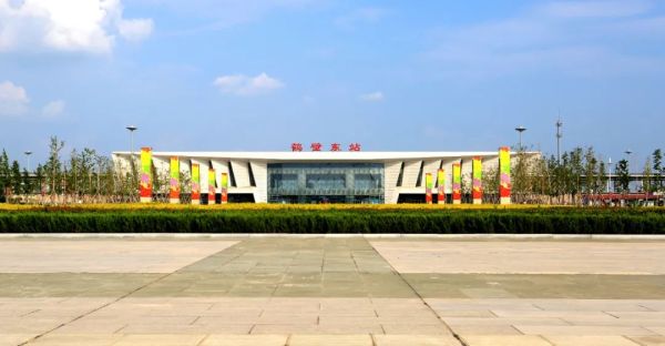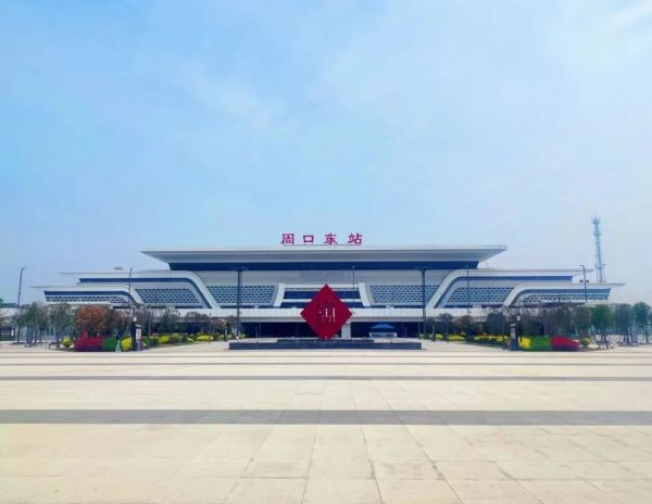 2019年12月1日,郑阜高铁周口东站正式开通。位于“满城文化半城水,内联外通达江海”的中原港城的周口东站,站房天际线根据建筑功能所定,由高至低层层叠加,与周口三水交汇的地域特征相吻合,立面幕墙横向的百叶设计,隐喻伏羲画卦,表现地方特色的伏羲氏文化。如今的周口东站是一个日开行列车破百、发送旅客破万的繁忙车站。