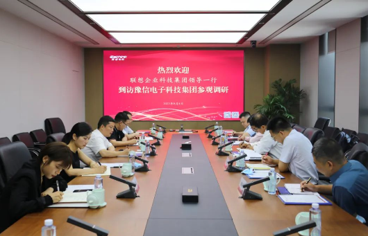 【大河财立方消息】豫信电子科技集团消息,8月4日下午,联想企业科技集团副总裁、中国区行业事业部总经理刘文超,联想企业科技集团河南区总经理李永红一行到访豫信电子科技集团,与豫信电科总经理、党委副书记、副董事长何航校,副总经理冯武,智能制造事业群、豫信科服相关负责人就未来合作进行洽谈交流。