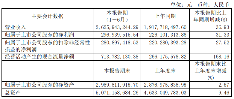 【大河财立方消息】8月25日,珀莱雅披露半年报,数据显示,今年上半年实现营业收入26.26亿元,同比增长36.93%;归属于上市公司股东的净利润2.97亿元,同比增长31.33%;营业收入变动原因主要系线上渠道营收同比增长。