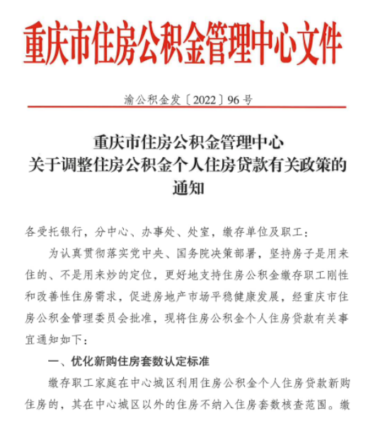 【大河财立方消息】9月3日消息,重庆市住房公积金管理中心发布关于调整住房公积金个人住房贷款有关政策的通知,在优化新购住房套数认定标准、首付款比例、贷款额度方面都发生了变化。
