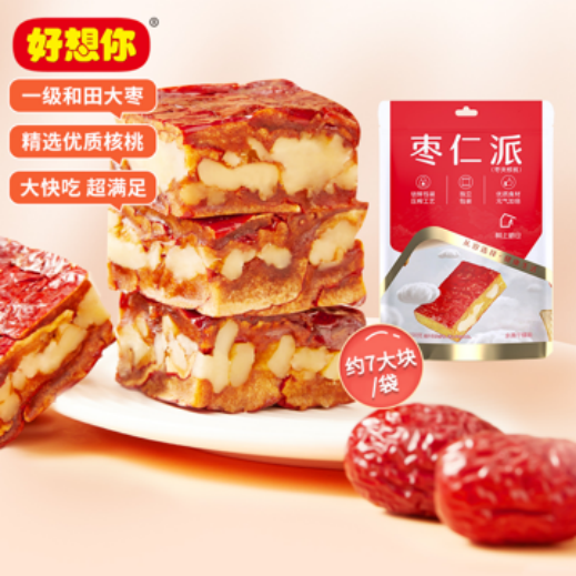 MISS YOU是好想你早年注册的英文备用品牌,2020年,借国内直播电商消费爆发,MISS YOU就定位于90后年轻人群体的养生膳食,主打如核心派(类似于枣夹核桃)、阿胶固元糕等滋补类膳食,主攻直播电商平台消费者。
