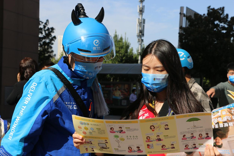 活动现场,河南银保监局相关领导同百瑞信托一起为外卖员送上《情系新市民,金融在行动——金融消费者权益保护手册》,将制作好的金融知识主题餐箱贴粘贴在“饿了么”外卖员送餐箱上,将制作好的反诈知识可降解的塑料袋提供给饿了么合作商家用于打包外卖,并将制作的金融知识宣传折页随外卖一起派送,让每收到一份外卖,都是一次金融知识小课堂。