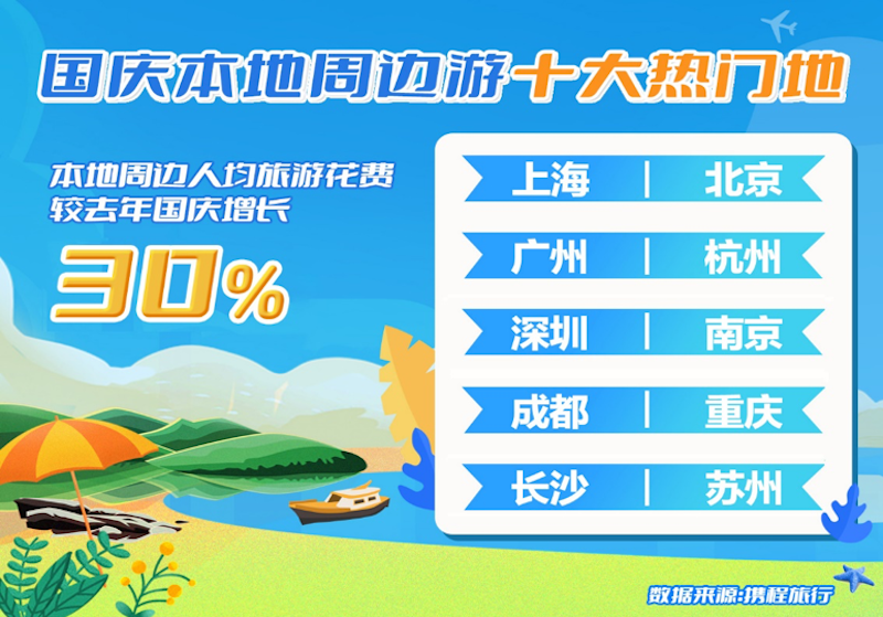 各大旅游平台统计数据显示,今年国庆最火爆的本地周边游集中在:上海、北京、广州、杭州、深圳、南京、成都、重庆、长沙、苏州合肥、武汉、宁波、西安、济南等城市。