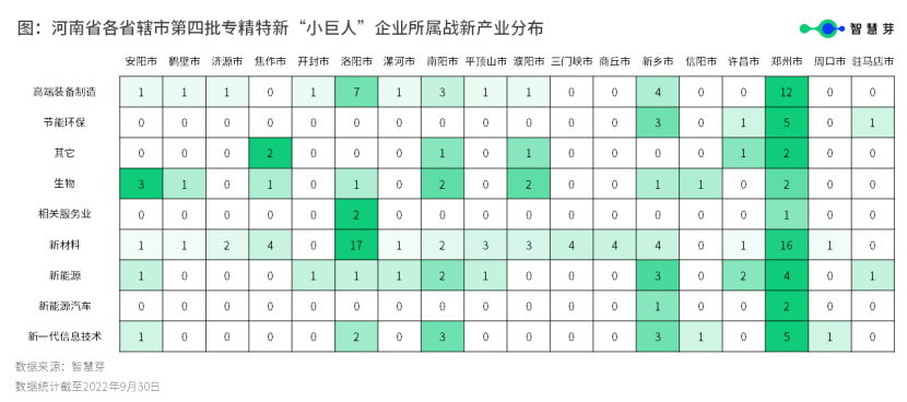 图3:河南省各省辖市第四批专精特新“小巨人”企业所属战新产业分布(来源:智慧芽)